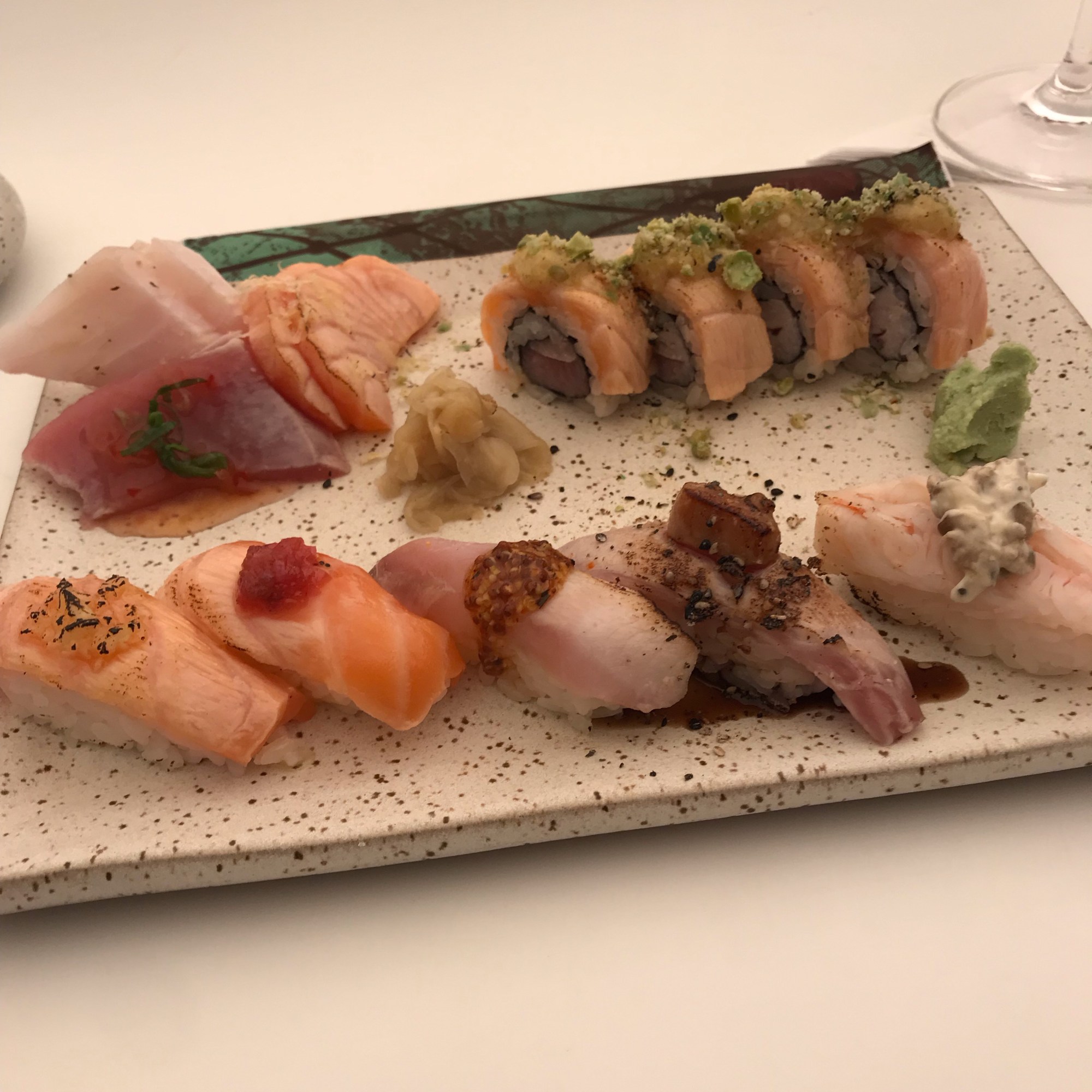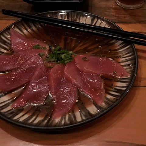 As opções do cardápio eram tão atrativas que demorei quase 1 hora tentando escolher, já que meu bolso ainda não me permite pedir TUDO que eu quiser. Acabei escolhendo uma dupla de nigiri, um tipo de carpaccio de atum com molho ponzu e uma cheesecake de banana. Nota 10 para tud! Eu saí de lá insuportável: não conseguia falar sobre outra coisa.